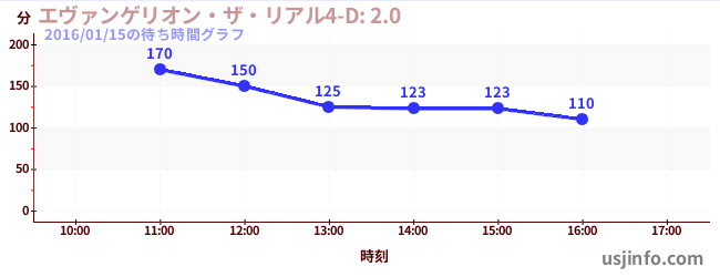 • エヴァンゲリオン・ザ・リアル4-D: 2.0$B$N(B2016年01月15日の待ち時間
