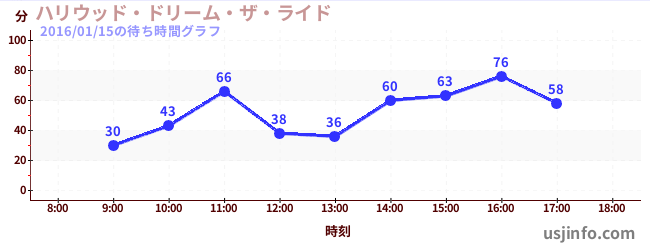 • ハリウッド・ドリーム・ザ・ライド$B$N(B2016年01月15日の待ち時間