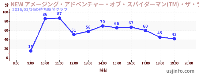 • NEW アメージング・アドベンチャー・オブ・スパイダーマン(TM)・ザ・ライド 4K3D$B$N(B2016年01月16日の待ち時間