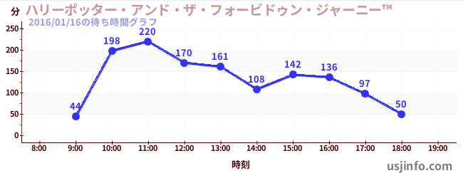 • ハリーポッター・アンド・ザ・フォービドゥン・ジャーニー™$B$N(B2016年01月16日の待ち時間
