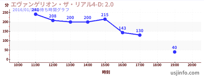 • エヴァンゲリオン・ザ・リアル4-D: 2.0$B$N(B2016年01月16日の待ち時間