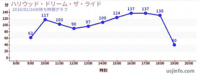 • ハリウッド・ドリーム・ザ・ライド$B$N(B2016年01月16日の待ち時間