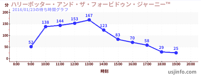 • ハリーポッター・アンド・ザ・フォービドゥン・ジャーニー™$B$N(B2016年01月23日の待ち時間