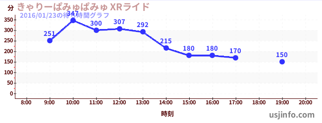 • きゃりーぱみゅぱみゅ XRライド$B$N(B2016年01月23日の待ち時間