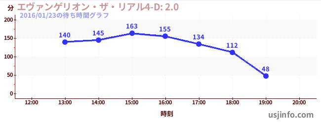 • エヴァンゲリオン・ザ・リアル4-D: 2.0$B$N(B2016年01月23日の待ち時間