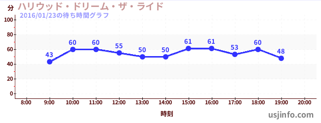 • ハリウッド・ドリーム・ザ・ライド$B$N(B2016年01月23日の待ち時間