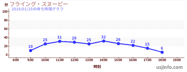 • フライング・スヌーピー$B$N(B2016年01月25日の待ち時間