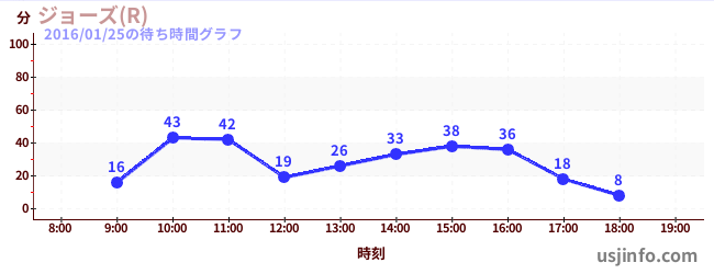 • ジョーズ(R)$B$N(B2016年01月25日の待ち時間