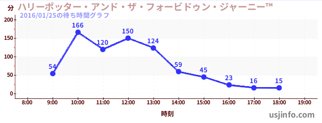 • ハリーポッター・アンド・ザ・フォービドゥン・ジャーニー™$B$N(B2016年01月25日の待ち時間