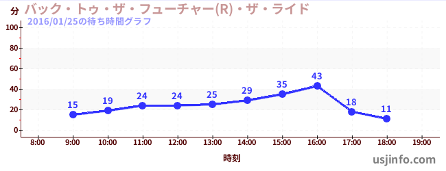 • バック・トゥ・ザ・フューチャー(R)・ザ・ライド$B$N(B2016年01月25日の待ち時間
