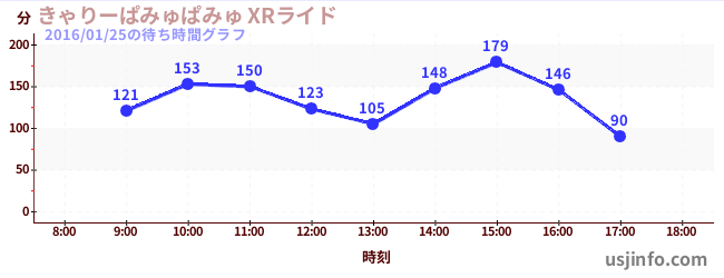 • きゃりーぱみゅぱみゅ XRライド$B$N(B2016年01月25日の待ち時間