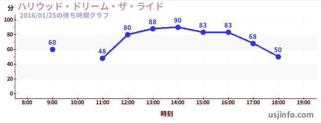 • ハリウッド・ドリーム・ザ・ライド$B$N(B2016年01月25日の待ち時間