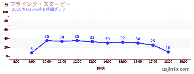 • フライング・スヌーピー$B$N(B2016年01月27日の待ち時間