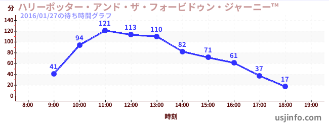 • ハリーポッター・アンド・ザ・フォービドゥン・ジャーニー™$B$N(B2016年01月27日の待ち時間