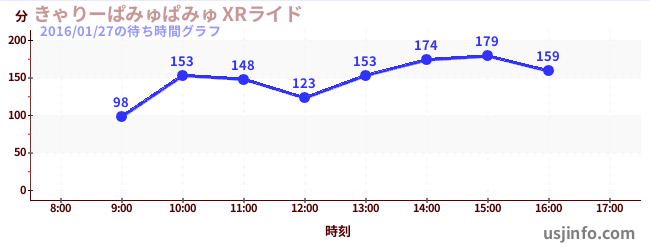 • きゃりーぱみゅぱみゅ XRライド$B$N(B2016年01月27日の待ち時間