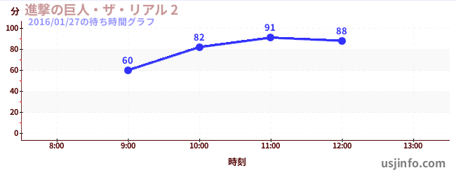• 進撃の巨人・ザ・リアル 2$B$N(B2016年01月27日の待ち時間