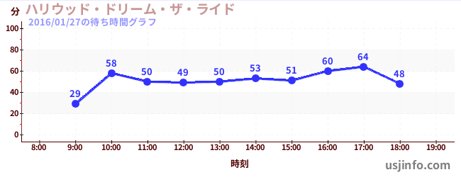 • ハリウッド・ドリーム・ザ・ライド$B$N(B2016年01月27日の待ち時間