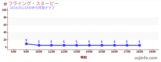 • フライング・スヌーピー$B$N(B2016年01月29日の待ち時間