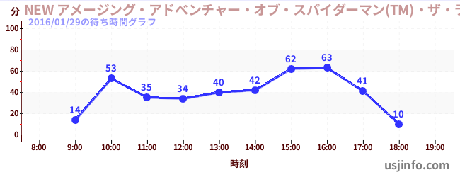 • NEW アメージング・アドベンチャー・オブ・スパイダーマン(TM)・ザ・ライド 4K3D$B$N(B2016年01月29日の待ち時間