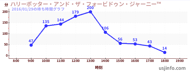 • ハリーポッター・アンド・ザ・フォービドゥン・ジャーニー™$B$N(B2016年01月29日の待ち時間