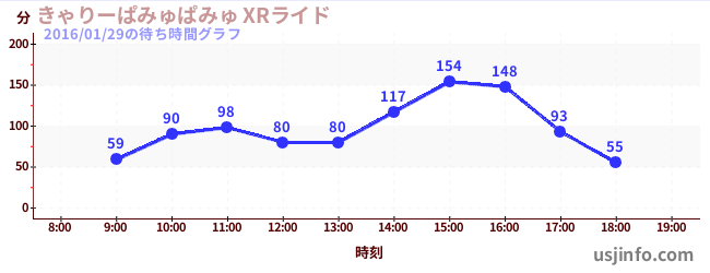 • きゃりーぱみゅぱみゅ XRライド$B$N(B2016年01月29日の待ち時間