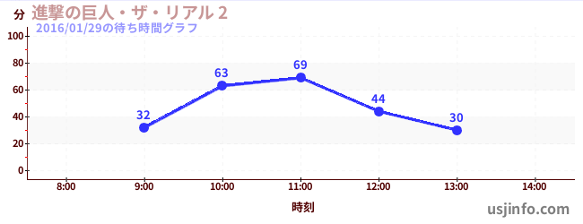 • 進撃の巨人・ザ・リアル 2$B$N(B2016年01月29日の待ち時間