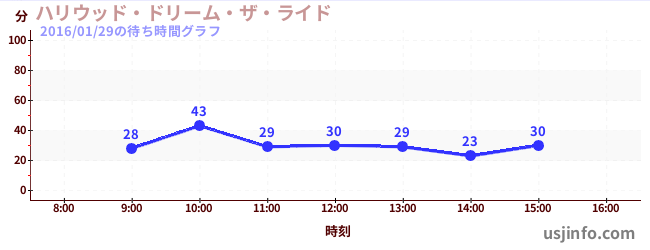 • ハリウッド・ドリーム・ザ・ライド$B$N(B2016年01月29日の待ち時間