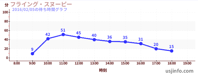 • フライング・スヌーピー$B$N(B2016年02月05日の待ち時間