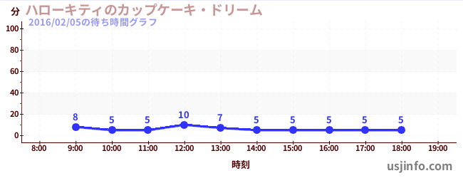 • ハローキティのカップケーキ・ドリーム$B$N(B2016年02月05日の待ち時間