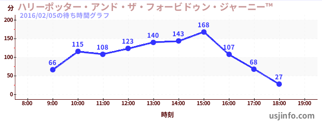 • ハリーポッター・アンド・ザ・フォービドゥン・ジャーニー™$B$N(B2016年02月05日の待ち時間