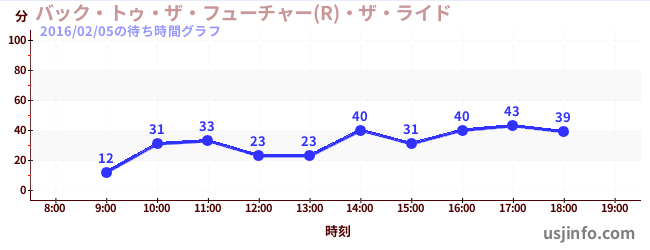 • バック・トゥ・ザ・フューチャー(R)・ザ・ライド$B$N(B2016年02月05日の待ち時間