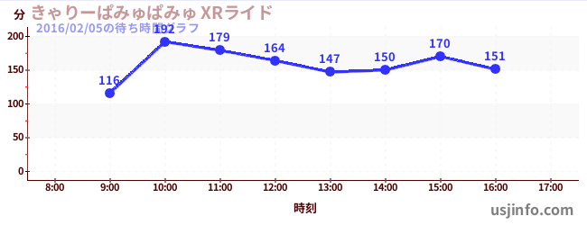 • きゃりーぱみゅぱみゅ XRライド$B$N(B2016年02月05日の待ち時間