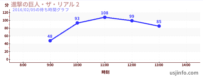 • 進撃の巨人・ザ・リアル 2$B$N(B2016年02月05日の待ち時間
