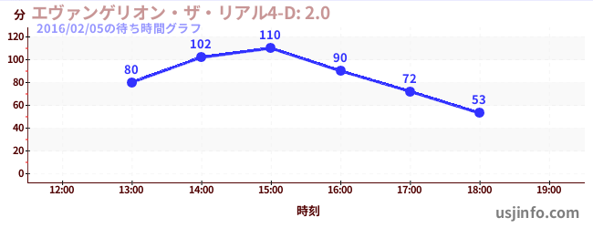 • エヴァンゲリオン・ザ・リアル4-D: 2.0$B$N(B2016年02月05日の待ち時間