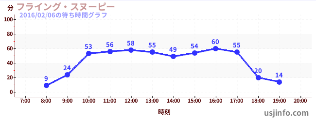 • フライング・スヌーピー$B$N(B2016年02月06日の待ち時間