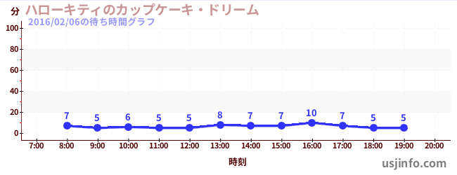 • ハローキティのカップケーキ・ドリーム$B$N(B2016年02月06日の待ち時間