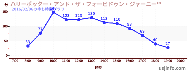 • ハリーポッター・アンド・ザ・フォービドゥン・ジャーニー™$B$N(B2016年02月06日の待ち時間