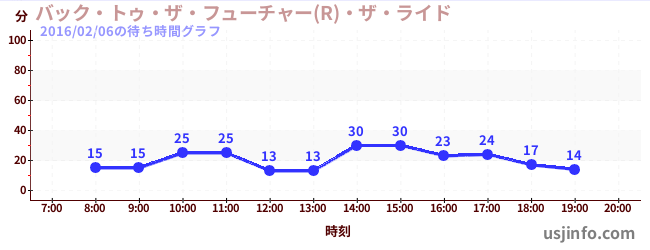 • バック・トゥ・ザ・フューチャー(R)・ザ・ライド$B$N(B2016年02月06日の待ち時間