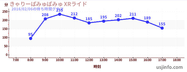 • きゃりーぱみゅぱみゅ XRライド$B$N(B2016年02月06日の待ち時間