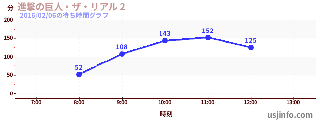 • 進撃の巨人・ザ・リアル 2$B$N(B2016年02月06日の待ち時間
