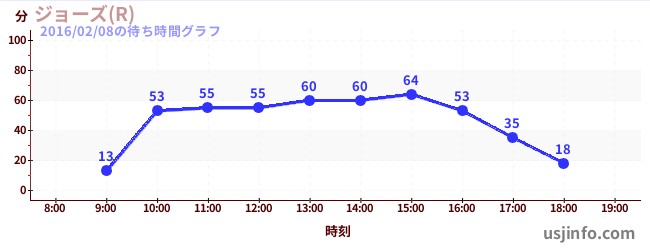 • ジョーズ(R)$B$N(B2016年02月08日の待ち時間