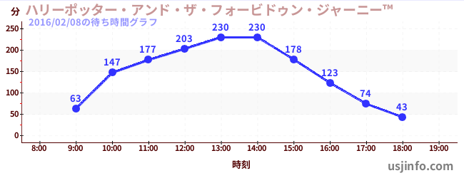• ハリーポッター・アンド・ザ・フォービドゥン・ジャーニー™$B$N(B2016年02月08日の待ち時間