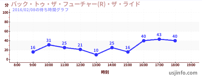 • バック・トゥ・ザ・フューチャー(R)・ザ・ライド$B$N(B2016年02月08日の待ち時間