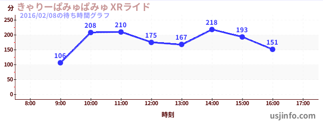 • きゃりーぱみゅぱみゅ XRライド$B$N(B2016年02月08日の待ち時間