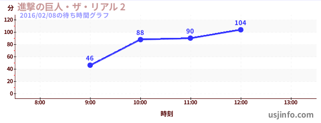 • 進撃の巨人・ザ・リアル 2$B$N(B2016年02月08日の待ち時間