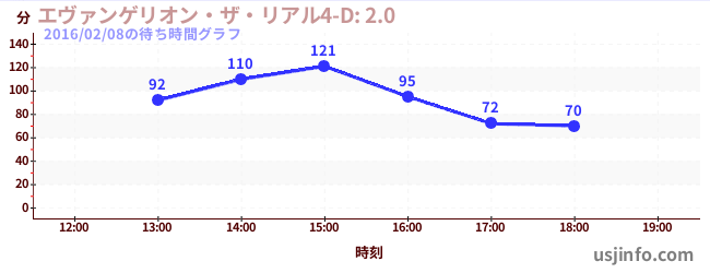 • エヴァンゲリオン・ザ・リアル4-D: 2.0$B$N(B2016年02月08日の待ち時間