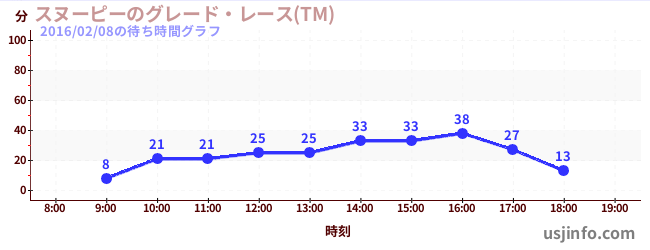 • スヌーピーのグレード・レース(TM)$B$N(B2016年02月08日の待ち時間