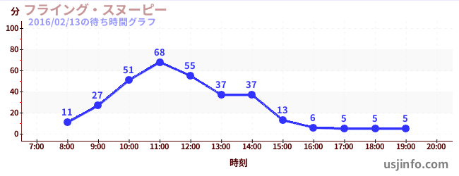 • フライング・スヌーピー$B$N(B2016年02月13日の待ち時間