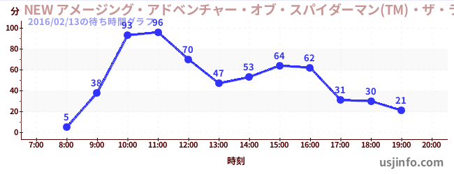 • NEW アメージング・アドベンチャー・オブ・スパイダーマン(TM)・ザ・ライド 4K3D$B$N(B2016年02月13日の待ち時間