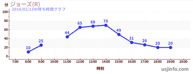 • ジョーズ(R)$B$N(B2016年02月13日の待ち時間